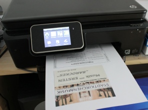 Ausdruck des Coverdesigns auf einem Farbdrucker zur Weiterverarbeitung.