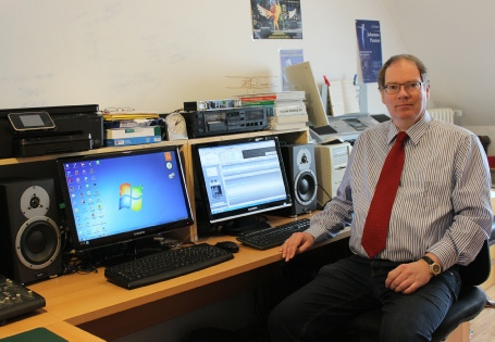 Dipl.-Ing. (BA) Florian Müller während der Arbeit im Studio